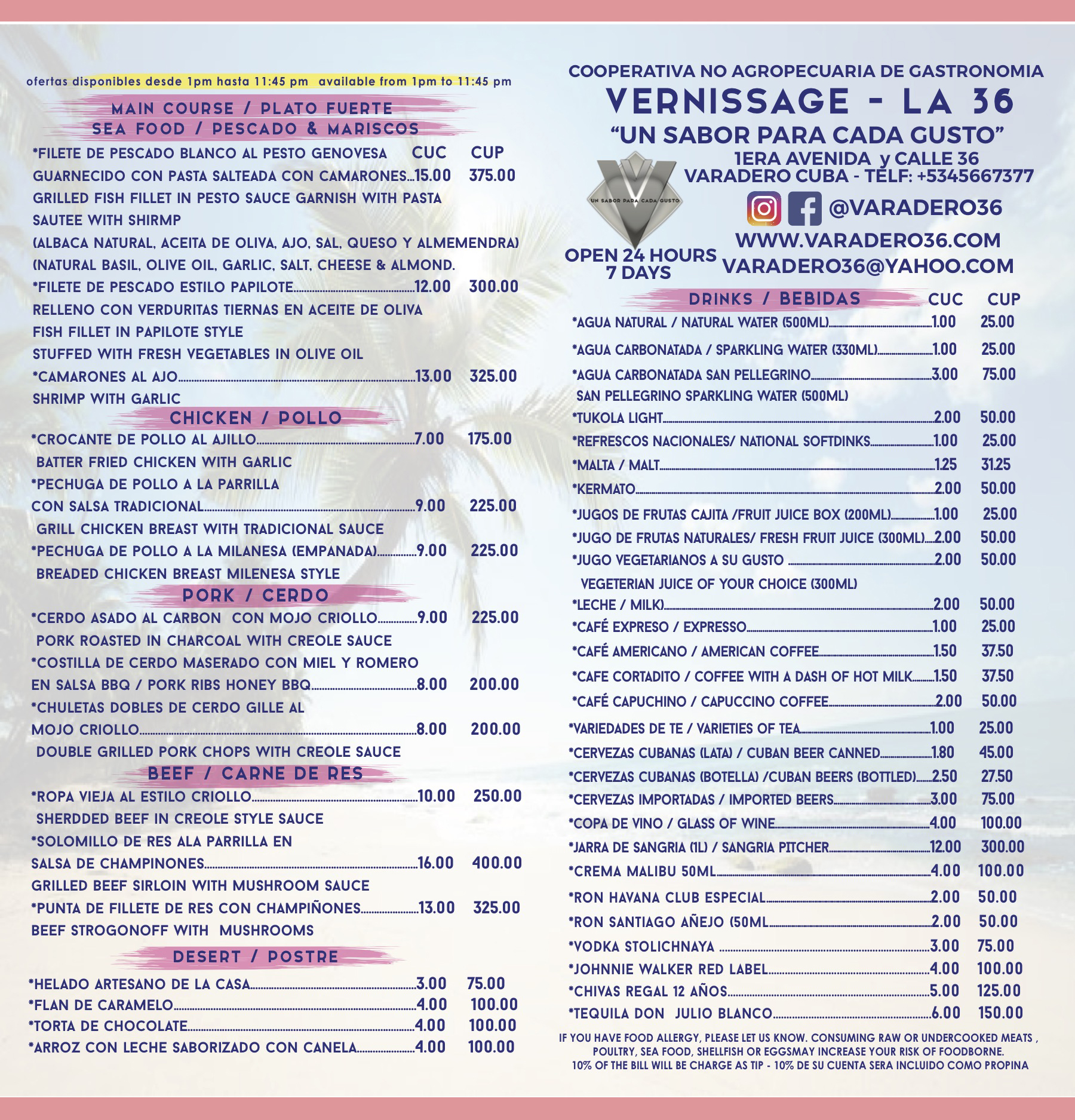 Nos encontramos en el centro de la Ciudad turistica de Varadero, ubicados en la calle principal, a menos de 100 metros de la hermosa Playa. En nuestra Terraza, con una impresionante vista del dia a dia de nuestra ciudad o en el area interior Climatizada, Ud podra disfrutar las 24 horas de nuestro amplio Menu, degustando un vigoroso Desayuno o seleccionando una amplia oferta de comidas Rapidas (Snack) o un exquisito plato Gourmet, elaborado por nuestros experimentados cocineros Cubanos y no olvide saborear nuestros elaborados y variados cocteles cubanos e internacionales.